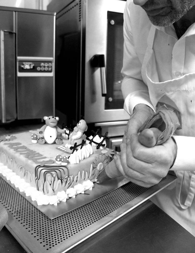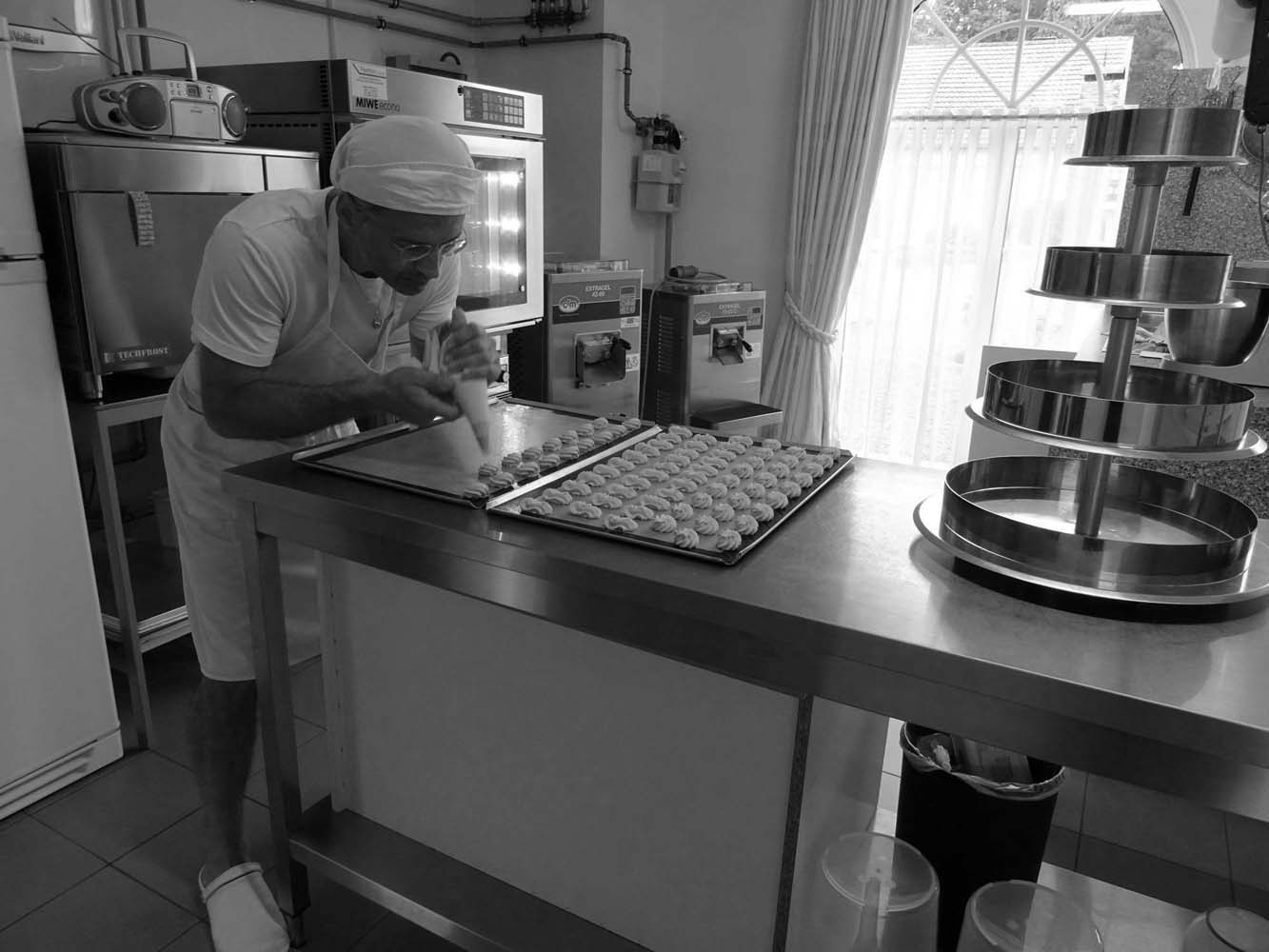 Ik, Johan, ben geboren en grootgebracht in een banketbakkerij. Op mijn 21ste nam ik de zaak over van mijn vader die opleidingen heeft genoten bij enkele grote namen in de patisseriewereld (zoals Van Dender te Brussel en Schoenaerts te Antwerpen). Maar de bloemallergie belette me om hier verder carrière in te maken.